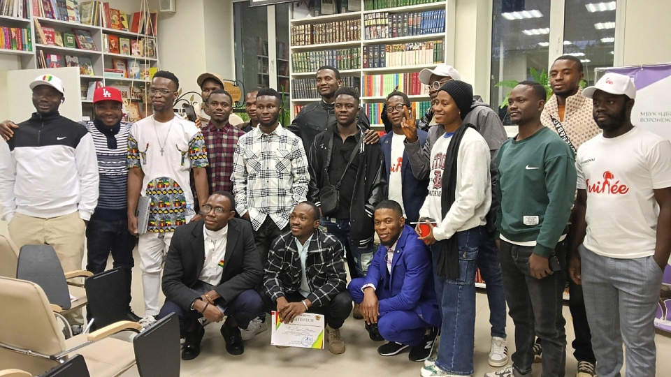 центра. Гости библиотеки были приятно удивлены, что они могут найти здесь полезную для себя литературу, которую могут взять для ознакомления домой. В рамках плодотворной встречи была создана база данных гвинейских студентов в столице Черноземья, определён уровень успеваемости и потребности ребят. Награды землячества получили студенты, достигшие высоких результатов в прошлом учебном году, были выработаны стратегии улучшения условий обучения и жизни студентов в Воронеже. - Вст