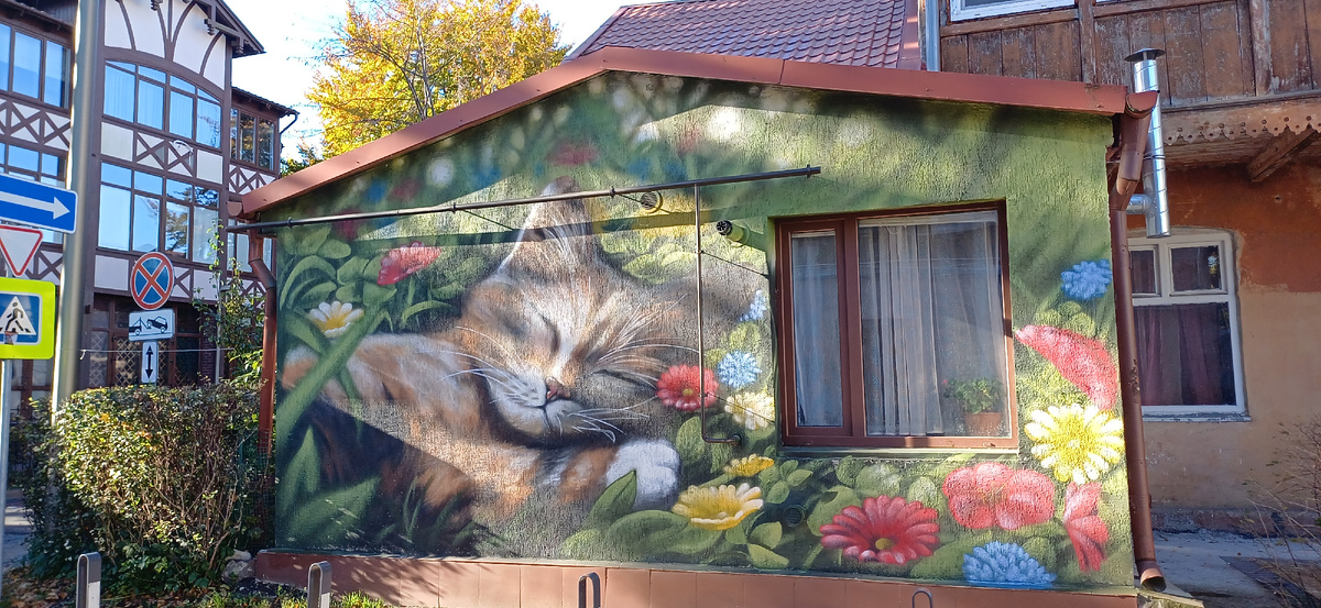 Вот в таком милом кошачьем царстве мы побывали, прогулявшись по Зеленоградску.