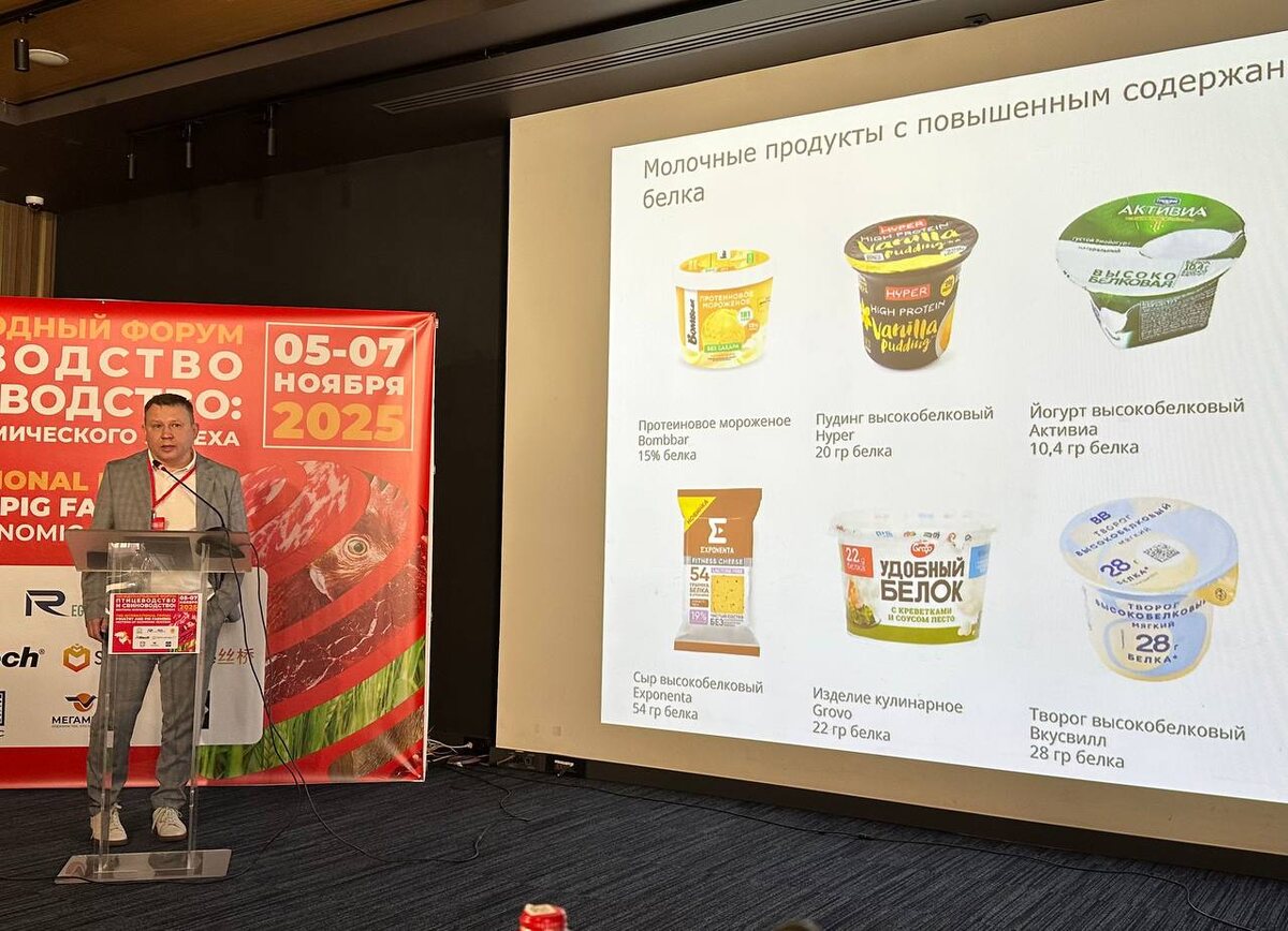 Косарев Александр Евгеньевич, коммерческий директор АО «Партнер-М», технолог мясного направления выступил с докладом «Эволюция питания: синергия растительных и животных белков» Эксперт отметил, что более 80% россиян страдают от дефицита нутриентов из-за чрезмерного потребления еды с низкой пищевой ценностью, особенно рафинированной и с высоким содержанием сахара.
