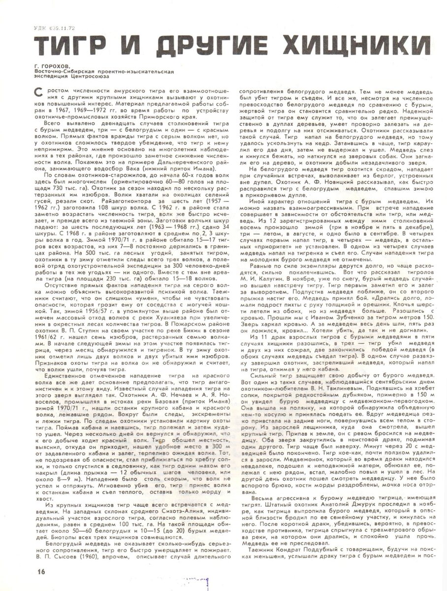 На этой неделе архивный четверг такой: Тигр и другие хищники Г. Горохов Восточно-Сибирская проектно-изыскательная экспедиция Центрсоюза Источник: журнал «Охота и охотничье хозяйство», №9/1973 🐯 Центр «Амурский тигр»