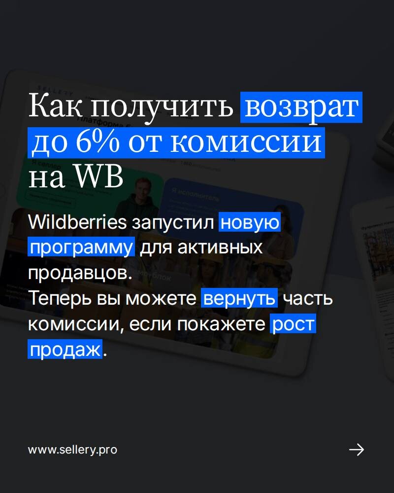 И эти цифры снова меняются. На прошлой неделе Wildberries запустил новую программу для продавцов, которая позволяет вернуть часть комиссии. Суть простая — площадка предлагает индивидуальные цели по обороту на три месяца, а если вы достигаете или перевыполняете план, получаете возврат части комиссии. Wildberries анализирует ваш средний оборот за последние три месяца и выставляет цель на следующие.