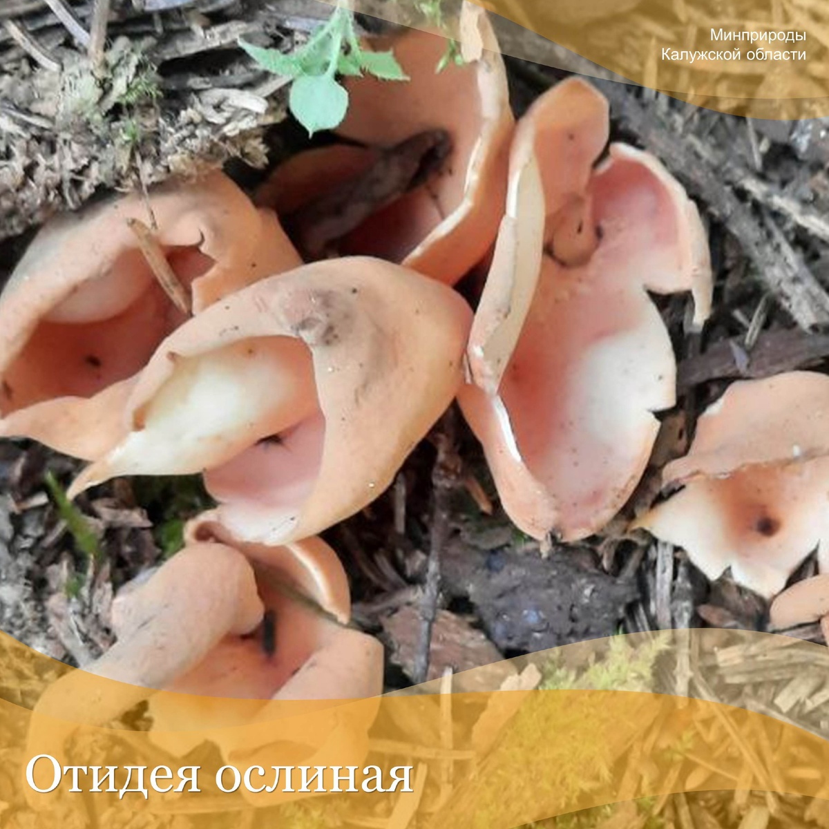 В начале сентября мы показали Вам, как прошел конкурс профессионального мастерства среди молодых специалистов лесной отрасли Калужской области. Но не рассказали о необычной находке, которую удалось сделать нашим специалистам во время прохождения этапов конкурса. Как Вы думаете, что же они нашли? А нашли они редкий гриб из региональной Красной книги, который называется отидея ослиная. Этот вид внешне очень напоминает ухо с закручивающимися внутрь краями, которое снизу сужено в короткую ножку. Наверное, именно по этой причине в народе его прозвали «ослиные уши». Растет этот гриб в хвойных и смешанных лесах. Плодовые тела встречаются на почве среди подстилки в августе–сентябре одиночно или группами, не ежегодно. И нам он попался на глаза в количестве трех небольших групп в ельнике, произрастающем на берегу живописного пруда на реке Прогнанка. И кстати, это всего лишь вторая находка в Жуковском муниципальном округе Калужской области.