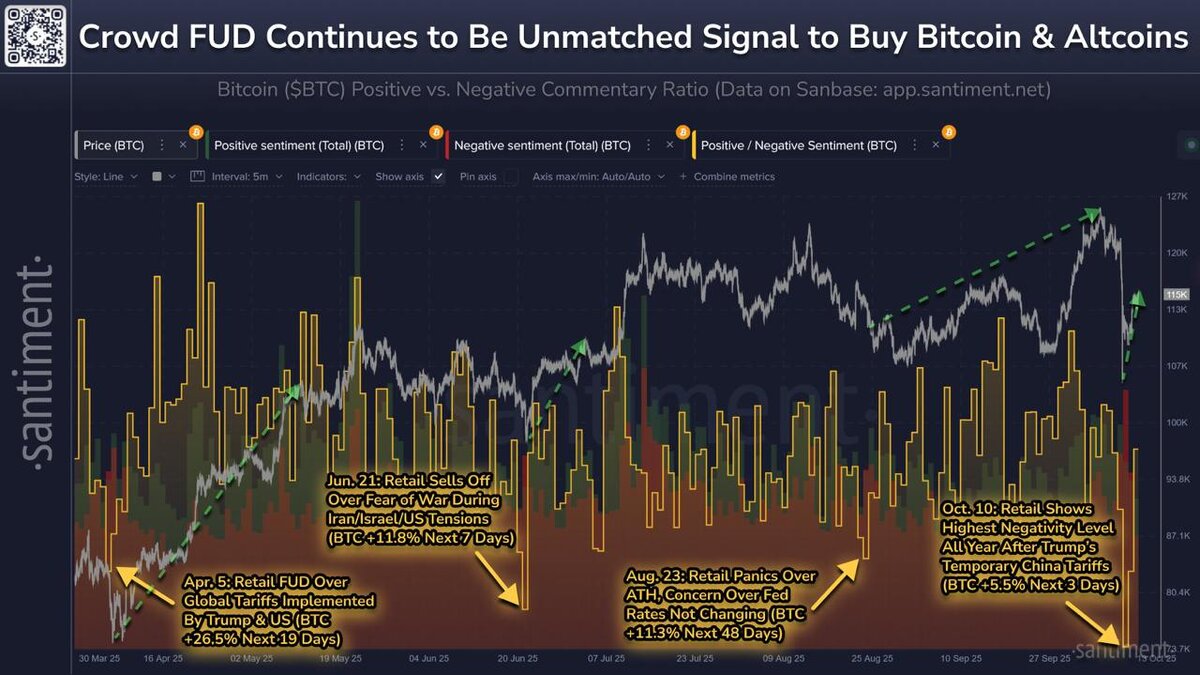 🚨 HOT TAKE: When the crowd panics, it’s often the best time to buy Bitcoin! 🤔💰 According to Santiment, the four worst sentiment days in