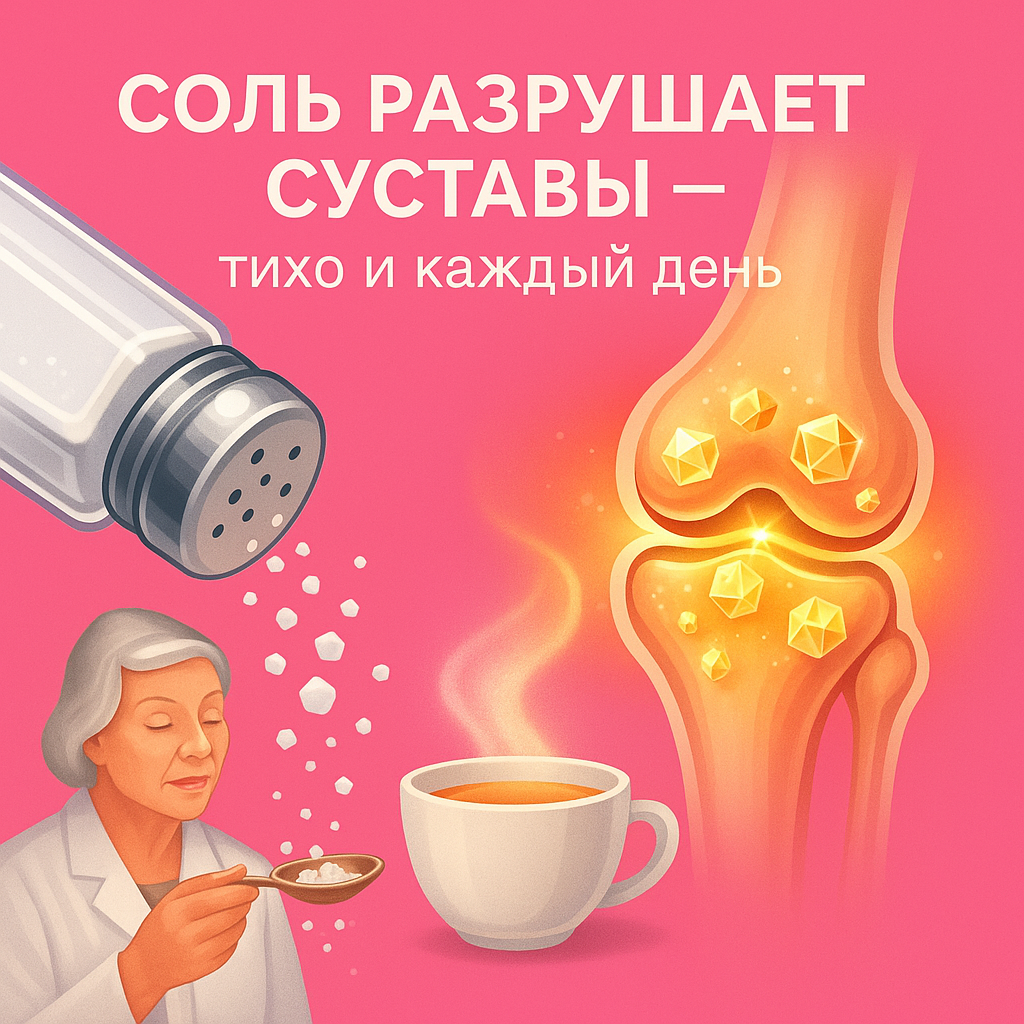 Кроме того, соль способствует отложению кристаллов — тех самых “солей” в суставах. Это не шутка и не метафора: под микроскопом они выглядят как острые иголочки, которые травмируют ткани.