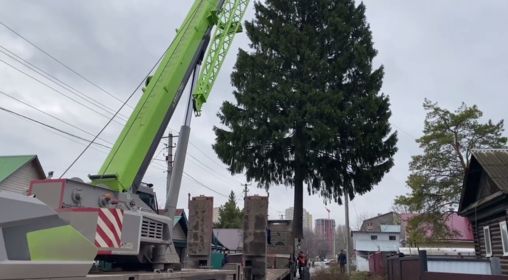 Дерево заготовили в частном секторе Затона. Первая новогодняя ель в Уфе будет установлена у входа в затонский парк «Волна». Об этом сообщили в администрации Ленинского района. Для праздничного оформления определили огромное дерево, выросшее в частном секторе микрорайона. Его спилили с помощью строительного крана, чтобы не задеть окружающие дома, и сейчас доставляют к месту назначения.