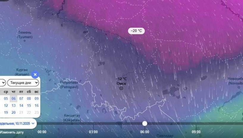 В начале следующей недели в Омской области ожидается резкое похолодание. Наиболее низкие температуры прогнозируются на севере региона: в ночные часы столбики термометров могут опускаться до −18…−20 градусов. В Омске с понедельника, 10 ноября, синоптики обещают устойчивые минусы, снег и порывистый ветер: ночью около −10…−12, днём — ближе к −3. По расчётам погодных моделей, холод продержится пару дней, затем вероятна кратковременная оттепель, после которой морозы вернутся. При этом часть метеосервисов даёт более мягкий сценарий по городу — в частности, ближайшая неделя на Gismeteo выглядит умереннее по ночным температурам, хотя с осадками. Читайте также на портале Om1.ru Достигнет уровня G3: омичей на этой неделе ждёт очередная напасть
