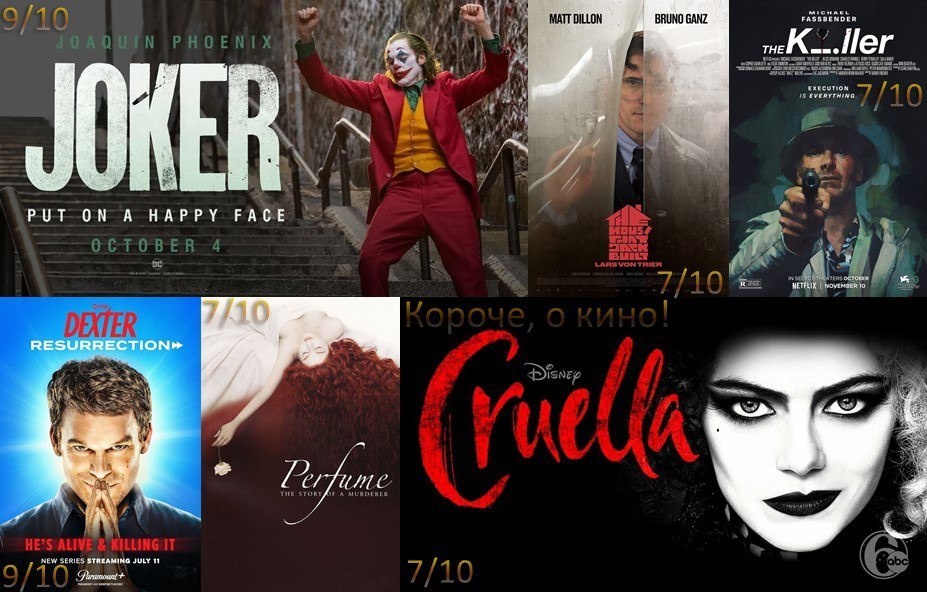 Главный герой — злодей Вне рейтинга: Декстер/Dexter 2006–2013 Декстер: Новая кровь/Dexter: New Blood 2021 Декстер: Воскрешение/Dexter: Resurrection 2025 Моя оценка: 9 из 10 Оценка на КП/IMDb: 8,3/8.5 История обаятельного серийного убийцы, который днём работает экспертом-криминалистом, а ночью вершит собственное правосудие. Рейтинг: 1. Джокер/Joker 2019 Моя оценка: 9 из 10 Оценка на КП/IMDb: 8,0/8.4 Трагичная история Артура Флека, чья жизнь в мрачном Готэме превращает его в одного из самых известных антагонистов поп-культуры. 2. Круэлла/Cruella 2021 Моя оценка: 7 из 10 Оценка на КП/IMDb: 7,6/7.3 Стильная и дерзкая история становления культовой злодейки, превращающей моду в оружие. 3. Убийца/The Killer 2023 Моя оценка: 7 из 10 Оценка на КП/IMDb: 6.6/6.7 Хладнокровный наёмник ведёт внутренний диалог о морали, пока продолжает жить в мире точных расчётов и смертельных ошибок. 4. Дом, который построил Джек/The House That Jack Built 2018 Моя оценка: 7 из 10 Оценка на КП/IMDb: 7,0/6.8 Пят