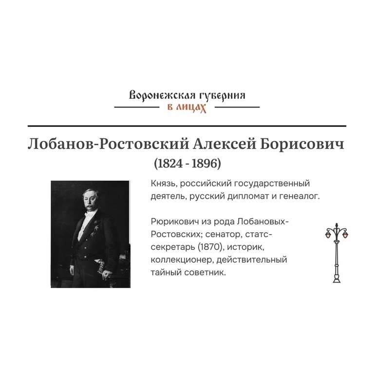 📌 Лобанов-Ростовский: князь, связанный с Воронежской землёй 30 декабря 1824 года родился князь Алексей Борисович Лобанов-Ростовский — министр иностранных дел Российской империи, дипломат мирового уровня. Но мало кто знает: его корни — в Воронежской губернии. Он родился в селе Алексеевское (ныне — микрорайон Масловка), в семье, связанной с древним родом Бородиных, записанным в родословной книге Воронежской губернии. От Воронежа до международной дипломатии — путь одного из самых влиятельных государственных деятелей XIX века: - Архитектор мирного урегулирования после Русско-турецкой войны, - Автор Московского договора с Китаем, - Посол в Константинополе, Лондоне, Вене, - Организатор строительства Китайско-Восточной железной дороги. Он был не только дипломатом, но и историком, генеалогом, библиофилом, чья коллекция вошла в Эрмитаж. 🔹 Почему это важно? Потому что великие судьбы начинаются с чувства принадлежности к своей земле. 👉 Перейдите по ссылке и узнайте полную историю чело