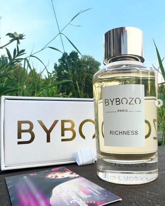 Bybozo Richness — элегантная современная роскошь в духе классических альдегидных парфюмов. Старт — прохладная роза в обрамлении розового перца и мягких, припудренных альдегидов. Они придают аромату кристальную чистоту без резкости. В сердце — деликатный букет: бархатный пион, пудровая фиалка и медово‑цитрусовый апельсин. Сочетание тепла и прохлады создаёт многогранное, объёмное звучание. База — шелковистая древесина с молочной нежностью и лёгкий, невесомый мускус. Шлейф получается основательным, но не тяжёлым: заметный, но ненавязчивый. Аромат балансирует между свежестью и теплотой, подходит для любого сезона, но особенно раскрывается в прохладную погоду. Это не громкое заявление, а уверенная элегантность — та, что замечают и запоминают.