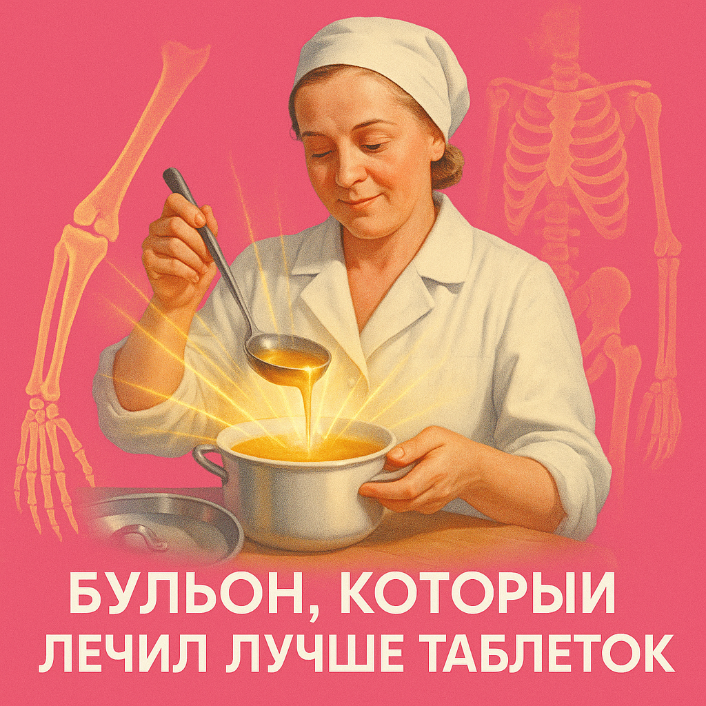 Она работала в травматологическом отделении почти 40 лет и всегда приносила пациентам особый бульон, который, по её словам, “сращивал кости быстрее, чем таблетки”. Анна Петровна готовила бульон по старинному рецепту: из говяжьих костей, суставов и немного мяса на хрящах.