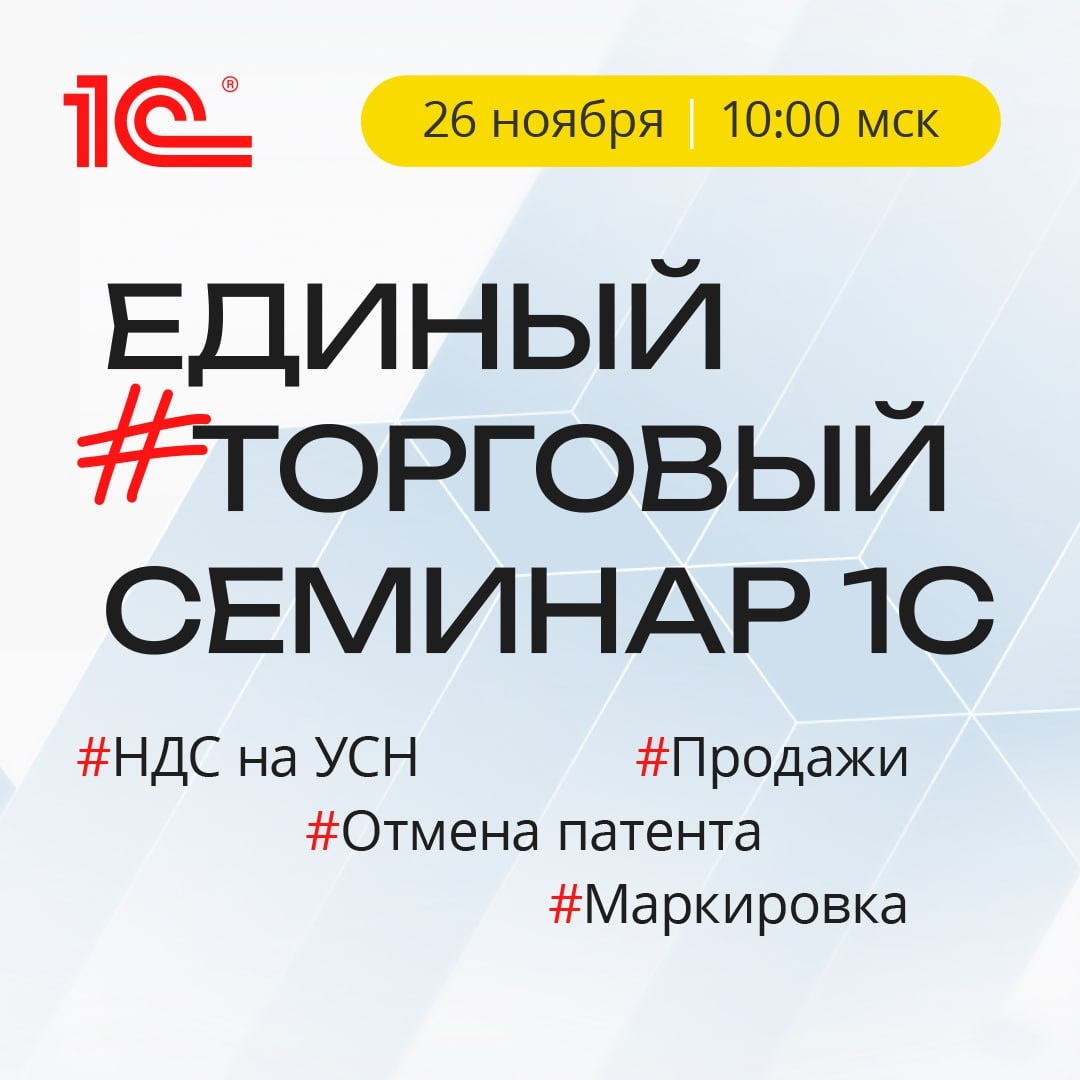 🔔 Присоединяйтесь к Единому торговому семинару 1С! Компания «Софт-Юнити» приглашаем всех, кто связан с продажами и автоматизацией торговых процессов, принять участие в Едином торговом семинаре 1С 📅 26 ноября | ⏰ 10:00 (мск) | 💻 Онлайн ✏️ В одном месте за короткое время вы узнаете: 🔸 рекомендации экспертов по налоговой реформе 2026 года 🔸 какие инструменты в программах «1С» помогут вам нарастить продажи 🔸 новости маркировки На семинаре вы сможете получить бесплатную консультацию по автоматизации вашей компании от партнеров 1С — практиков цифровизации бизнес-процессов 💡 Кому будет интересно? ▫️Владельцам малого и среднего бизнеса ▫️Операционному директору ▫️Коммерческому директору ▫️Ответственным за развитие продаж Не пропустите возможность узнать о новейших решениях для торговли! 👉 Оставить заявку 🔥 Участие бесплатное – успейте зарегистрироваться!