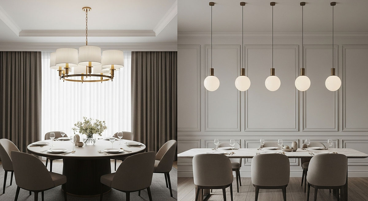 Люстра над столом: размер, отступы, высота и когда вместо одной — группа