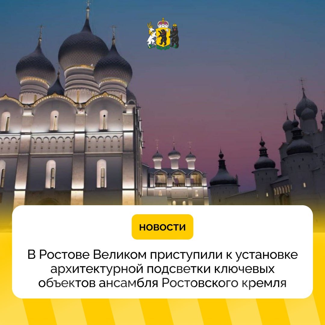Успенский собор и знаменитая звонница Ростовского кремля скоро заиграют новыми красками — в Ростове Великом начались работы по установке архитектурной подсветки. Проект, получивший положительное заключение историко-культурной экспертизы, предусматривает использование около 750 световых приборов. Этот шаг — часть большой программы по преображению облика города. Благодаря художественному свету величественный ансамбль Кремля откроется для жителей и туристов с новой, вечерней стороны.