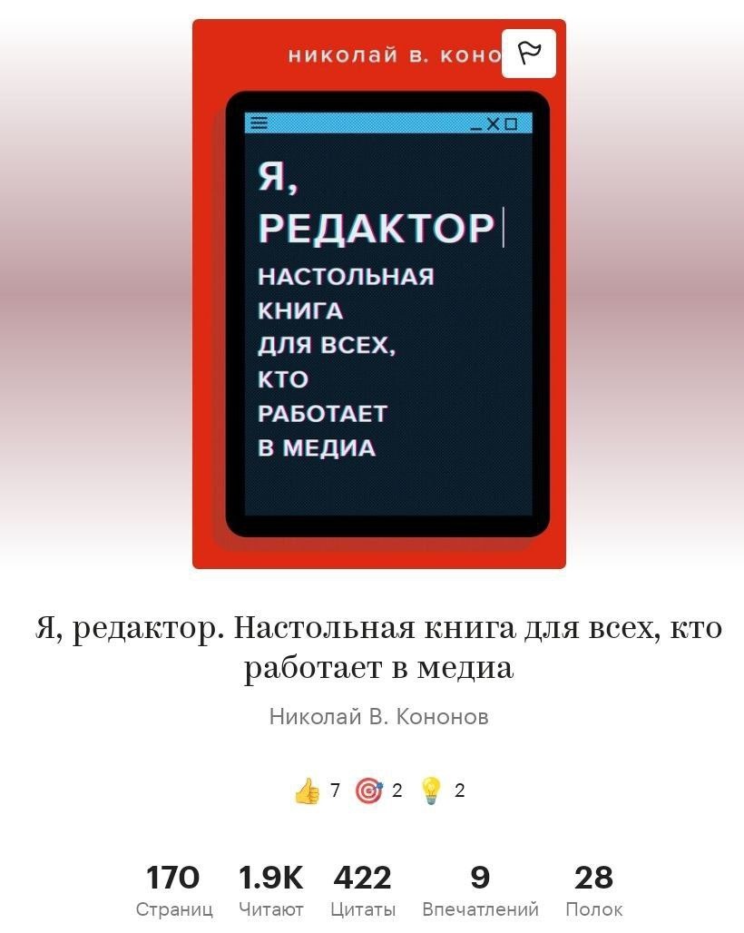 Если копирайтинг — твоя судьба, то надо честно признаться в ЭТОМ! 18+ #книганедели Говорил и повторюсь. Копирайтер должен уметь писать в инфостиле, но Ильяховым нужно переболеть, как ветрянкой. Моей зелёнкой оказался Николай Кононов. Его книга «Автор, ножницы, бумага» помогла посмотреть на инфостиль без обожания. Можно писать по-другому. Более того, нужно. Иначе станешь безжизненной правильной текстовой массой, которую от джипити отличает разве что умение не выдавать враньё за творчество. На днях закончил ещё одну книгу Кононова «Я, редактор. Настольная книга для всех, кто работает в медиа». Она стала очередным глотком свежего бриза. Николай пишет эмоционально, даже страстно. Чувствуется, что процесс создания текста для него сродни [это слово попросил убрать мой главный корректор)]. Догматический копирайтинг Ильяхова крайне полезен в начале писательского пути, чтобы меньше думать и больше писать. Кононов — это автор для тех, кто заскучал в бесконечной писанине, поклонении ЦА и посл
