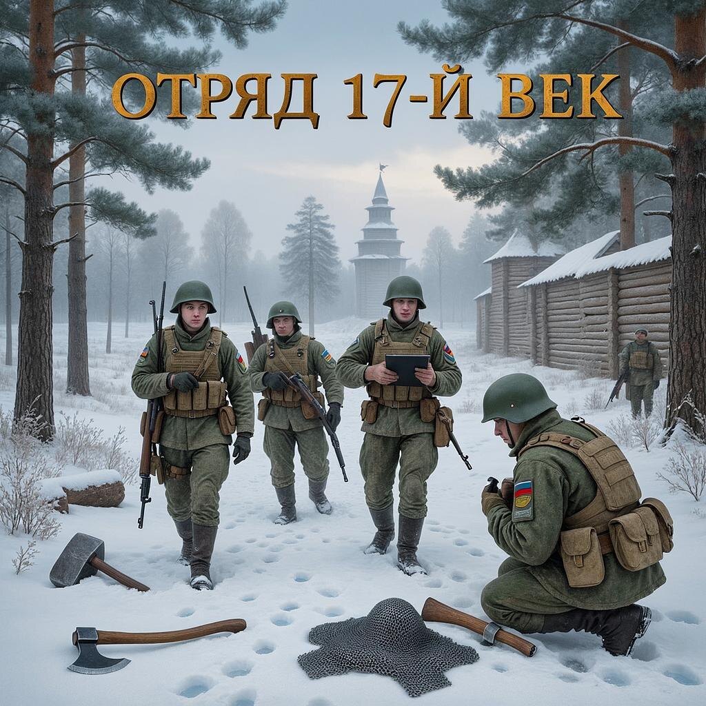 Под прикрытием леса отряд осторожно направился к поселению. По пути они столкнулись с группой вооруженных мужчин, одетых в старинные костюмы эпохи царя Михаила Федоровича Романова.
