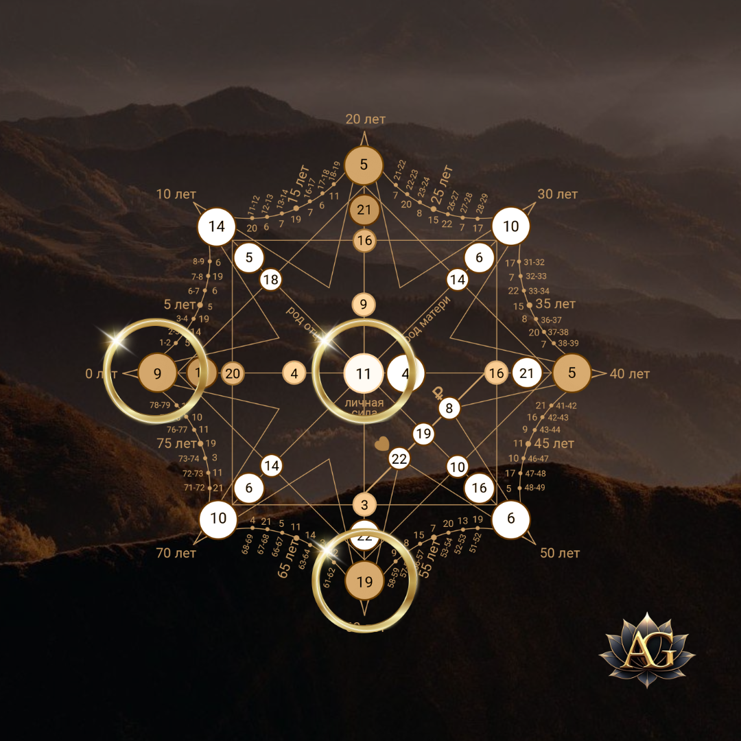 А 11 у меня в центре, что означает — из человека, которому природа забыла выделить энергетический ресурс (по 9), моя задача — наработать в себе энергию и силу через сторонние средства (по 11).