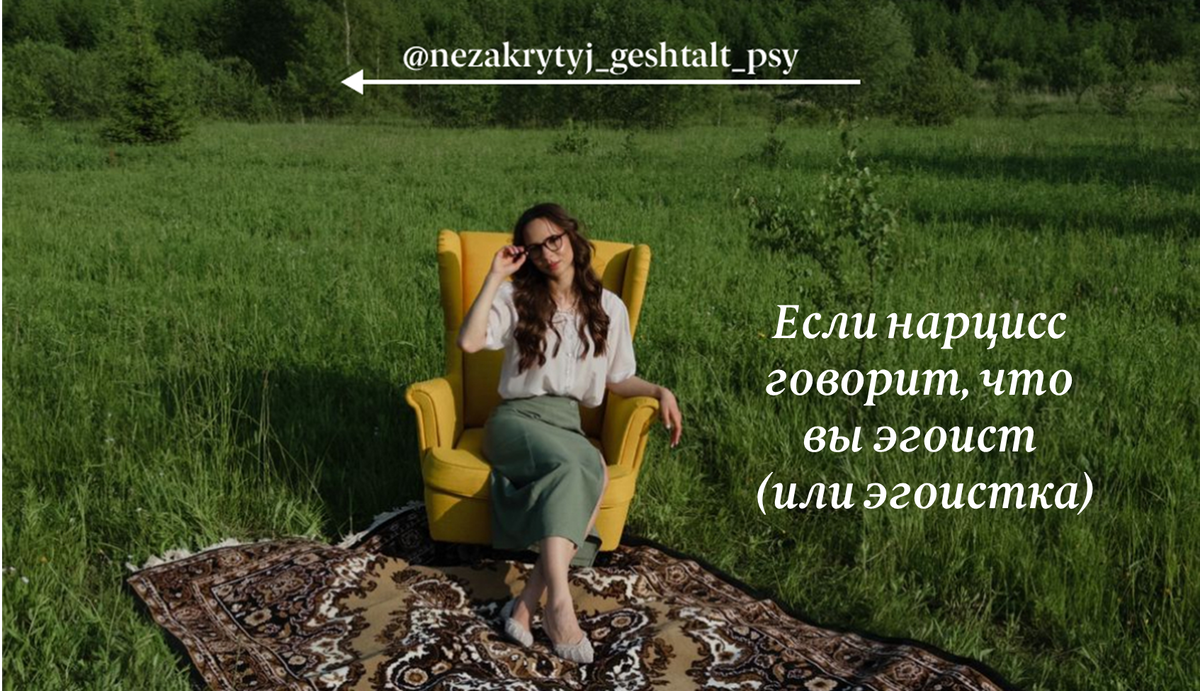Вы можете встать под негативную проекцию и сказать да, я эгоист (или эгоистка) и спросить, как ему с этим? (вообще, желательно данный трюк выполнять профессионалам не в бытовых условиях, а, например, в терапевтическом пространстве, в нем же ваш нарцисс сможет поисследовать и свой личный эгоизм, который в нем точно имеется, но не признается). А в обычных бытовых отношениях с этим "обвинением" можно обходиться достаточно просто - не брать. Если вы себя знаете и не мните святым, в целом вас не должно сильно и коребить это заявление, потому что вы понимаете, что все люди так или иначе в разной мере эгоистичны и вообще понятие "эгоистичности" очень гибкое - потому что сто процентов у вас, как и у других людей, был опыт, где вы вели себя альтруистично, а порой и вовсе самоотвержено и жертвенно, а был опыт, где вы наоборот настойчиво выбирали себя и свои интересы, порой, может, не сильно заботясь или вообще не заботясь о ком-либо еще, потому что ваша жизнь длинная и разная, вы в ней разный.