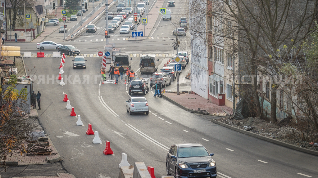 В Брянске на улице Горького открыли движение транспорта после завершения очередного этапа капитального ремонта. В конце октября дорожники уложили верхний слой асфальта на участке от пересечения с улицами Карла Маркса и Калинина, а также нанесли свежую дорожную разметку. Таким образом, капитальный ремонт проезжей части от проспекта Ленина до улицы Калинина считается завершённым. Наш корреспондент одним из первых проехал по обновлённой дороге — видео прилагается. "> Движение автомобилей на этом участке уже открыто, однако водителям необходимо соблюдать временные знаки и быть внимательными. Ремонт улицы продолжается: дорожники обустраивают съезды, на тротуарах укладывают плитку и устанавливают лестницы на крутых подъёмах. Пешеходам временно выделена полоса движения, отделённая пластиковыми барьерными блоками. Общий бюджет капитального ремонта улицы Горького составляет около 86 млн рублей. Работы ведутся в рамках национального проекта «Инфраструктура для жизни». Улица Горького в Брянске по