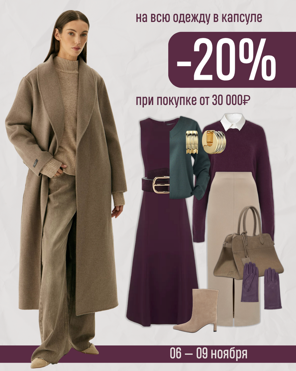 Сколько должна стоить вещь, чтобы она правда радовала?👇🏻 Ощутимо меньше, чем вы готовы были заплатить за нее!💸 Капсулы с 6 по 9 ноября, все – вся одежда – со скидкой ➖2️⃣0️⃣% при покупке от 30,000₽ Можно с рассрочкой – скидка все равно действует. 👉🏻Просто заполните анкету по 🔗 до воскресенья, 9 ноября. ⠀ Что сюда входит: стилист подберет для вас персональную капсулу💊, мы привезем ее на примерку на 24 часа и увезем все, что не подошло, на следующий день. ⠀ Акция действует на тарифы МИНИ 5️⃣➕ вещей, ПРО 8️⃣➕ вещей и УЛЬТРА 🔟 вещей. ⠀ ☝🏻Заказать примерку по акции можно до 31 декабря 2025 ⠀ 📏Подбираем одежду от 40 до 50 размера. ⠀ 🌐Привозим на примерку в Москву, Санкт-Петербург, Нижний Новгород, Ярославль, Липецк Тулу, Курск, Тверь и другие города. #марла_акция