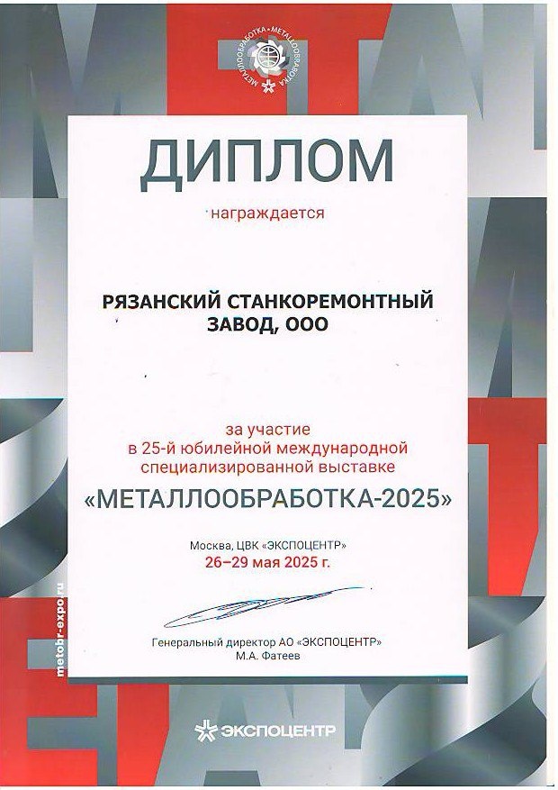 Рязанский станкоремонтный завод с успехом выступил на международной выставке «Металлообработка 2025» Рязанский станкоремонтный завод с большим успехом представил свои услуги и решения в рамках международной выставки «Металлообработка 2025» — одного из самых значимых отраслевых мероприятий. Экспозиция предприятия вызвала живой интерес у участников и посетителей, позволив продемонстрировать высокий уровень компетенций в сфере станкоремонта. Участие в выставке укрепило позиции завода на рынке, открыло новые возможности для сотрудничества и принесло ряд перспективных деловых контактов. Полученные результаты подтверждают высокий уровень доверия к бренду и востребованность его услуг в России и за рубежом. Контактная информация: