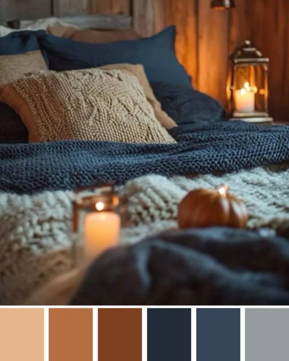Что получится, если взять коричнево-оранжевые тона и подружить их с тёмно-синей гаммой