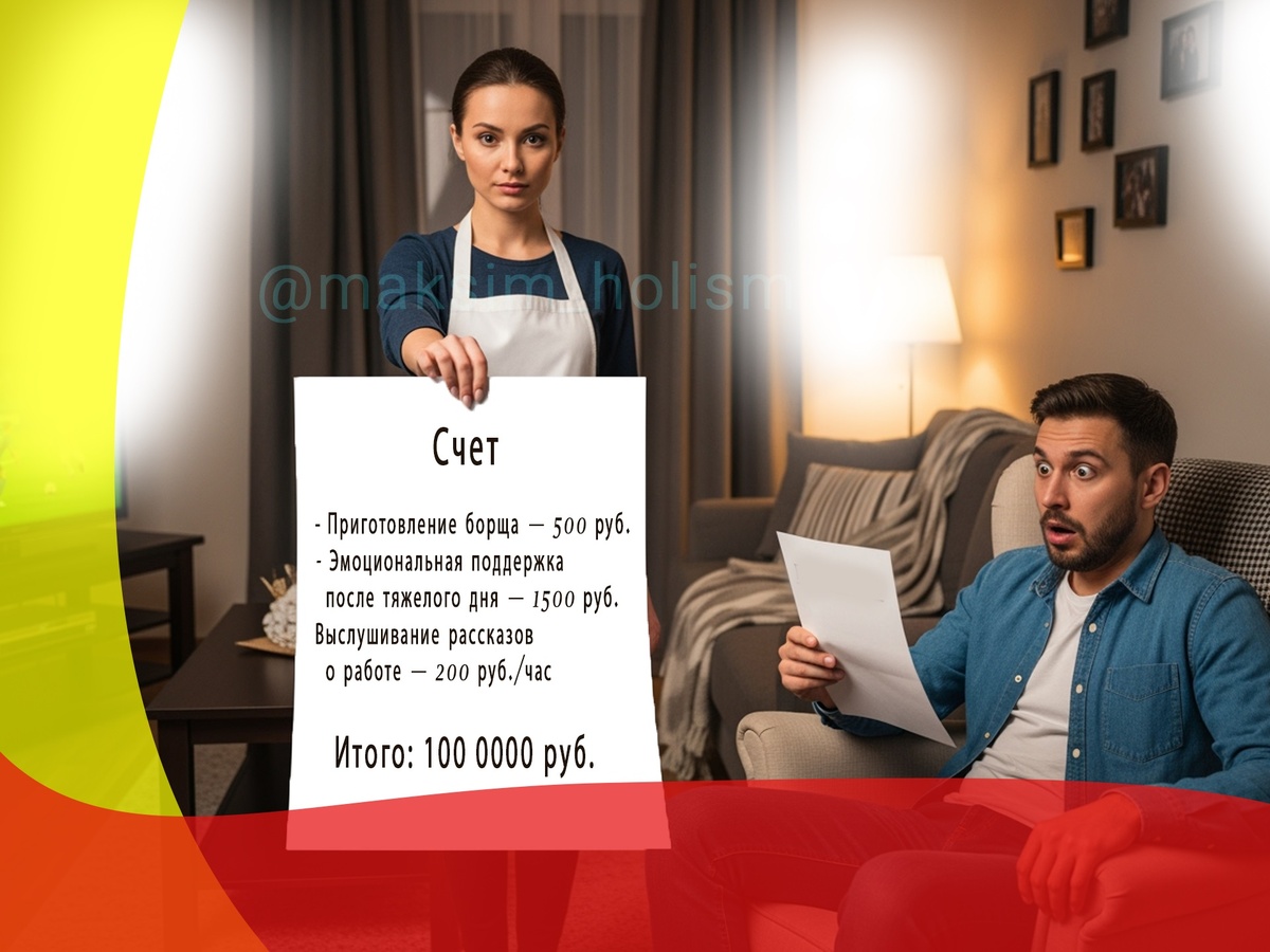 Представим ситуацию: мужчина работает на основной работе, женщина ведет домашнее хозяйство. Если ее труд начинает оплачиваться, не логично ли будет и мужчине предъявить встречные претензии? Например, требовать оплаты за ремонт автомобиля, сантехнические работы, "таскание тяжестей" или другие традиционно "мужские" обязанности по дому. Где тогда провести границу между взаимопомощью и оказанием услуг? А где заканчивается забота о близких и начинаются услуги?
