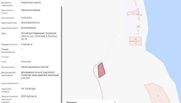 Название: Земельный участок с КН60:24:0020702:114, площадью 2342 кв.м, с местоположением: Псковская область, Усвятский муниципальный округ