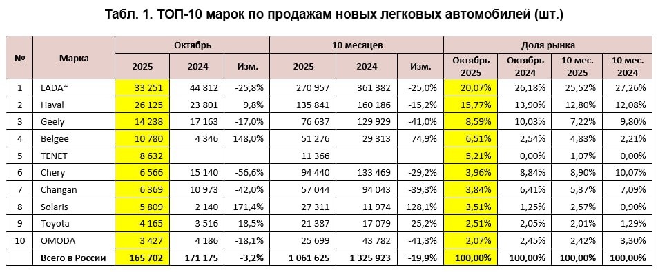 Причины понятны - в преддверии роста утильсбора россияне (в том числе юрлица) поторопились скупить все машины, которые только могли. К слову, если власти лишь хотели помочь дилерам освободить стоки - то задача близка к решению, и законопроект с "утилем" для 160-сильных машин можно завернуть. Но нет, этого не будет. Потому что одновременно происходит провал с важным госпроектом - стремительно падают продажи марки Lada. Год от года динамика составляет -25,8%. А разница между долями, которые занимают на рынке Lada и Haval, еще никогда не была такой скромной - 4,3%. Исторический, как говорится, минимум.
