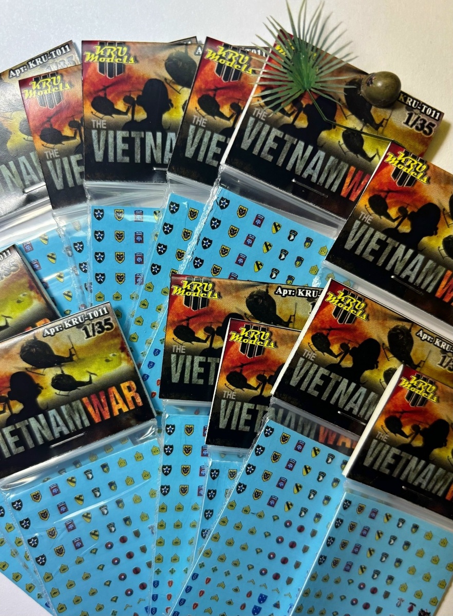 KRU models из Невиномысска Ставропольского края выпустила откорректированные декали с шевронами американских подразделений, принимавших участие во Вьетнамской войне, для фигур в масштабе 1/35.