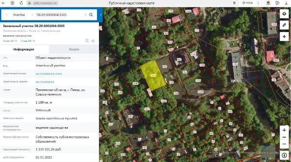 Название: земельный участок с кадастровым номером 58:29:3001004:3505, категория земель: земли населенных пунктов, вид разрешенного