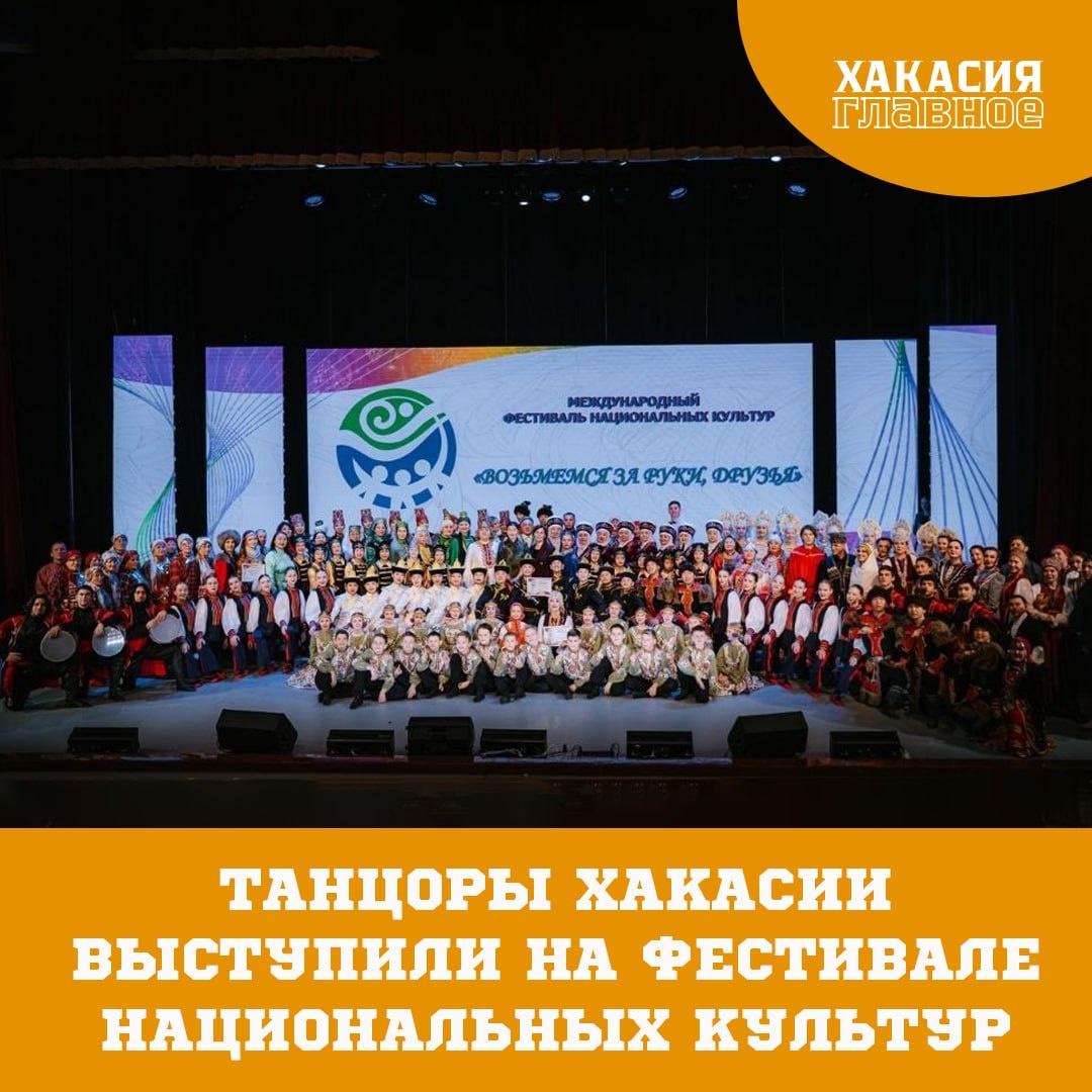 Cтудия «Ынархас» приняла участие в гала-концерте фестиваля «Возьмёмся за руки, друзья» Мероприятие прошло в День народного единства в Ханты-Мансийске. Участниками стали около 6 тысяч человек из 66 субъектов России и 6 стран – Египта, Германии, Китая, Казахстана, Узбекистана и Белоруссии. Хакасию представил Заслуженный коллектив народного творчества России танцевальная студия «Ынархас» (Дружба) под руководством заслуженного работника культуры России и Хакасии Елены Шарай и балетмейстера Любови Боргояковой. 🥇А еще ребята стали обладателями звания «Лауреат I степени» в номинации «Стилизованный народный танец (возрастная категория 7-13 лет)». 👏Поздравляем наш коллектив с этой наградой и сердечно благодарим их за внесенный вклад в популяризацию традиционной культуры народов России! 🇷🇺 Фото: Минкультуры РХ 🖼Хакасия. Главное здесь