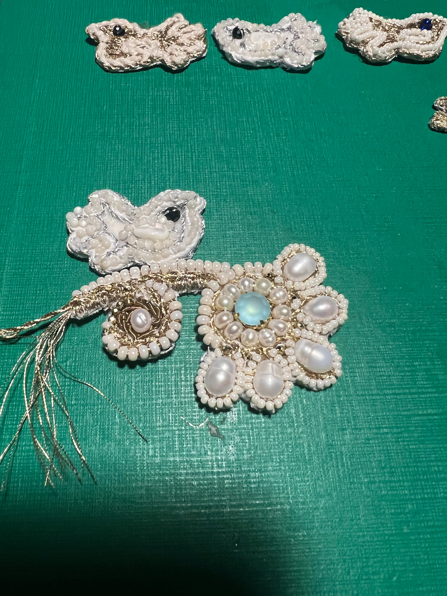 Вышиваю ветку с цветком. Сажение по бели. Брошь.