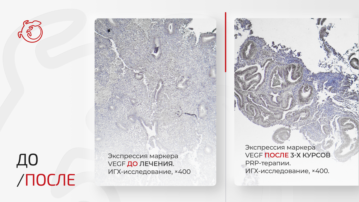 Пациентка А. 28 лет. Диагноз: бесплодие 2 (маточный фактор). Привычное невынашивание беременности. Хронический эндометрит атрофическая форма. В анамнезе 8 выкидышей на сроках до 9-10 недель. Диагноз был подтвержден по данным УЗИ (М-эхо 4,6 мм), гистологического исследования + иммуногистохимического исследования (tgf-b, vegf, cd-138). Пациентке было проведено подряд 2 цикла Cortexil PRP-терапии внутриматочно (на 5-7 день менструального цикла и через неделю после первого введения ) вкупе со стандартной терапией хронического эндометрита согласно клиническим рекомендациям. Результат: М-эхо 7,6 мм. По иммуногистохимическому исследованию отсутствие cd-138, увеличение vegf, уменьшение tgf-b. Беременность наступила через месяц после инсеминации. Естественные роды на сроке 38-39 недель в переднем виде затылочного предлежания. Врач Муртазина Гульназ Ханифовна, акушер-гинеколог, к.м.н., Уфа.
