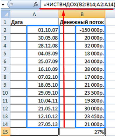 Чтобы рассчитать эффективную доходность к погашению с помощью функции ЧИСТВНДОХ (XIRR) в Excel, выполните следующие шаги: Важные замечания: Пример использования: