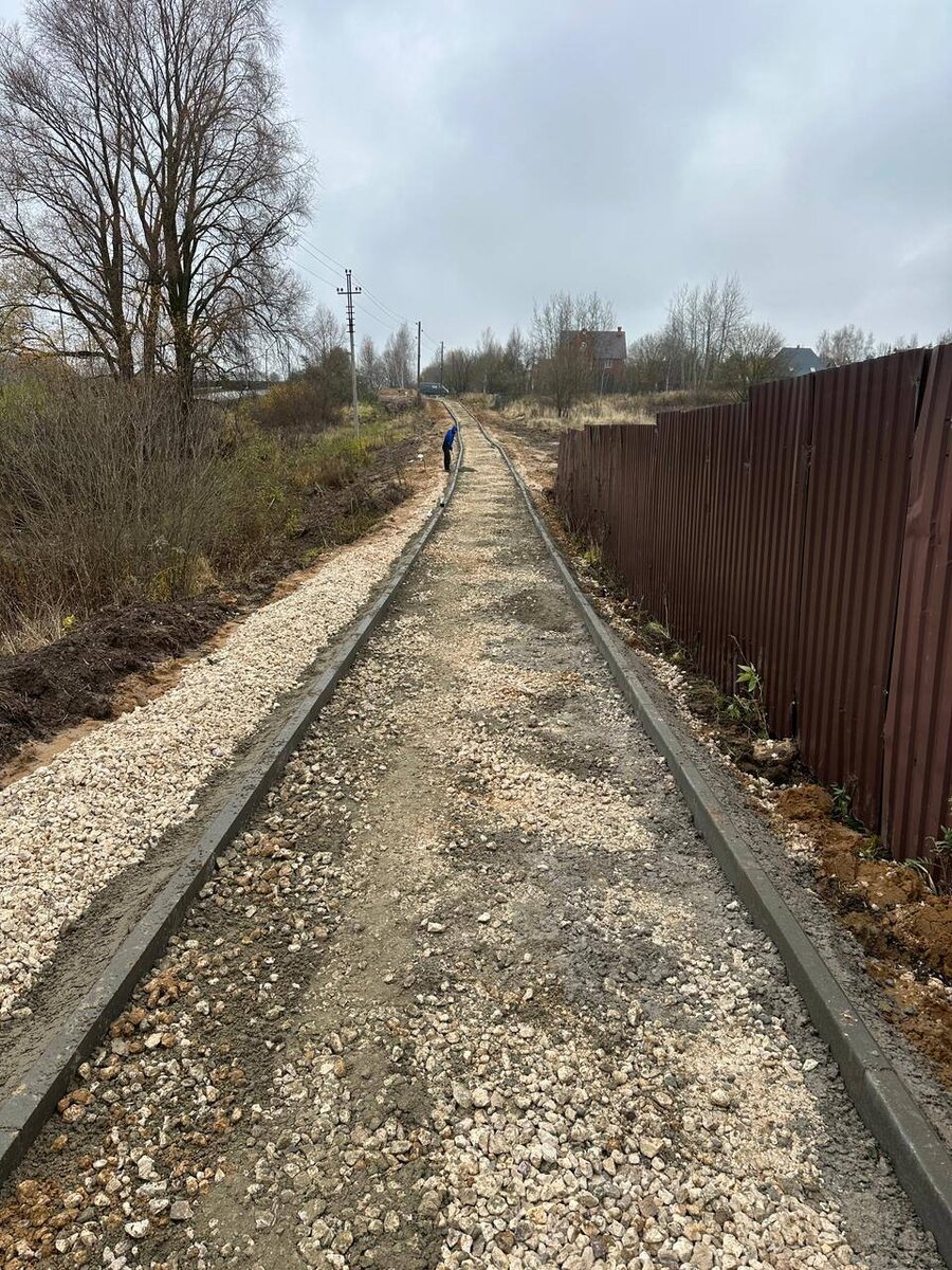 В микрорайоне Барыбино проходит обустройство нового тротуара вдоль улицы Чкалова – от дома № 77 до коттеджного посёлка «Ульянкины горки».