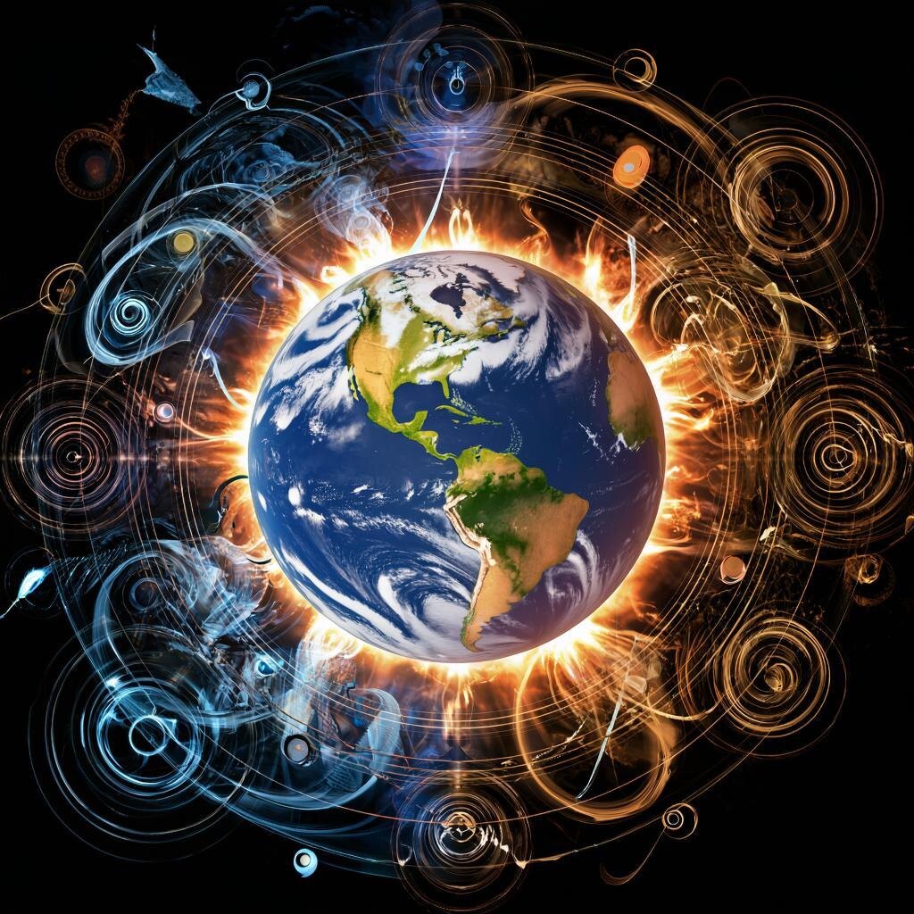 Первый ритм — это медленное, равномерное вращение Земли вокруг своей оси, символизирующее последовательность уходящего в историю опыта, сохраняемого в памяти поколений. Этот ритм сравним с электрическим током, который течет плавно и равномерно, подобно волне, обеспечивая стабильность и непрерывность хода событий.