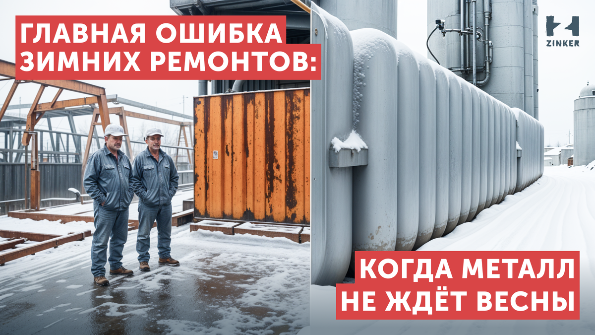 Зима — это время, когда большинство строительных и ремонтных работ на открытых объектах останавливаются. Холод, снег и сильные ветры делают работу с металлом рискованной: традиционные лакокрасочные системы не выдерживают отрицательных температур, время высыхания увеличивается в разы, а качество покрытия падает. В итоге ремонт откладывается на весну, и металл остаётся без защиты, подвергаясь коррозии. Почему металл «не ждёт» весны? Сталь, как и любой другой металл, активно реагирует на влагу и кислород. Даже в холодное время года процессы коррозии не прекращаются, они лишь замедляются. Любые микротрещины, царапины или участки без покрытия становятся источником проблем для целого каркаса, фермы или ограждения. Отложенный ремонт — это не просто неудобство: это риск образования подпленочной коррозии, ускоренного износа конструкций и дополнительных расходов на восстановление весной. Zinker: работа зимой без компромиссов Решение этой проблемы — технологии, позволяющие наносить защитное покры
