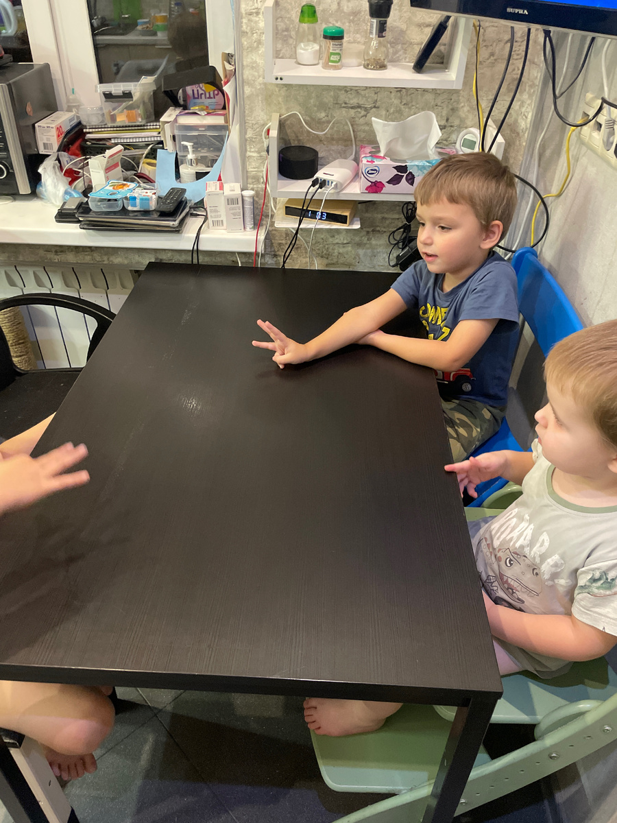 Завтракаем и обедаем всегда по-разному. Я могу либо быстрее покормить утром их и потом сама перекусить. В обед я могу заниматься уборкой, поэтому их сажаю и продолжаю свои дела. Но ужин — святое. Даже в дни, когда Гриша ужинает в саду, то все равно мы его забираем, и дома он с нами сидит за столом, может что-то немного поесть, но традиция — сильная вещь.