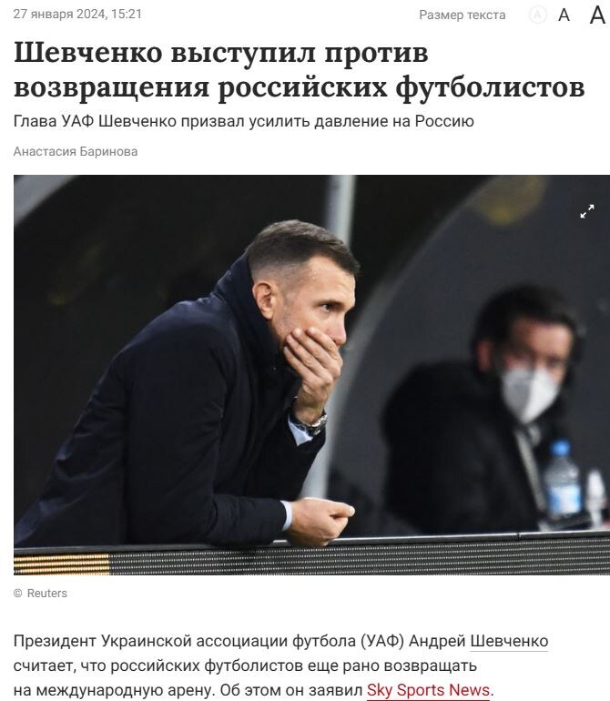 ⚽️ Еще немного о футболе. Спортсмены не должны быть разменной монетой в политических играх. Российские футболисты так же мечтают о международных стартах, как и украинские. Запреты и ограничения лишь вредят развитию футбола. Мы должны найти путь к диалогу и сотрудничеству - президент Украинской ассоциации футбола о необходимости дружбы с российским футбольным сообществом в интервью для сайта управления физической культуры и спорта (24 октября 2025 года на сайте). Напомним, что еще полгода назад Шевченко заявлял, что вопрос о допуске российских команд на международные турниры под руководством УЕФА не может даже рассматриваться, а давление на них должно быть усилено. Кажется, что текущее положение дел и вскрывающаяся правда об истинных целях украинского правительства заставляют элиту украинского общества сменять свою гневную риторику и "переобуваться". Что ж, остается, только напомнить в прошлому великому футболисту, что наше предложение остается в силе. ⚡️ГроZa | ПОДПИСАТЬСЯ 💪 #Футб