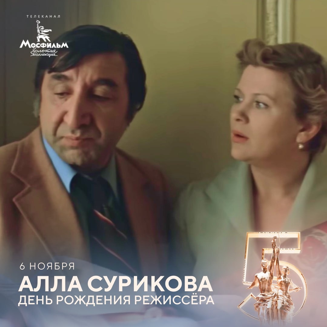 6 ноября исполняется 85 лет режиссёру, народной артистке России Алле Суриковой. В этот день показываем её знаменитые фильмы. 📺 Начнёт марафон комедия «Суета сует» в 12:35. 📺 Далее в программе фильм «Искренне ваш…» в 14:05 с Виталием Соломиным и Верой Глаголевой в главных ролях. 📺 В 19:20 телеканал покажет ромком «Будьте моим мужем». 📺 В 20:50, зрители увидят серию документального проекта «Мосфильм. Золотой век» — «Мосфильм Женский», посвящённого в том числе и творчеству Аллы Суриковой. 📺 В 21:00 в эфире вестерн «Человек с бульвара Капуцинов». 📺 Сразу после, в 22:50, документальный фильм о съёмках кинокартины «Человек с бульвара Капуцинов. 20 лет спустя». Какой фильм режиссёра вы любите пересматривать больше?