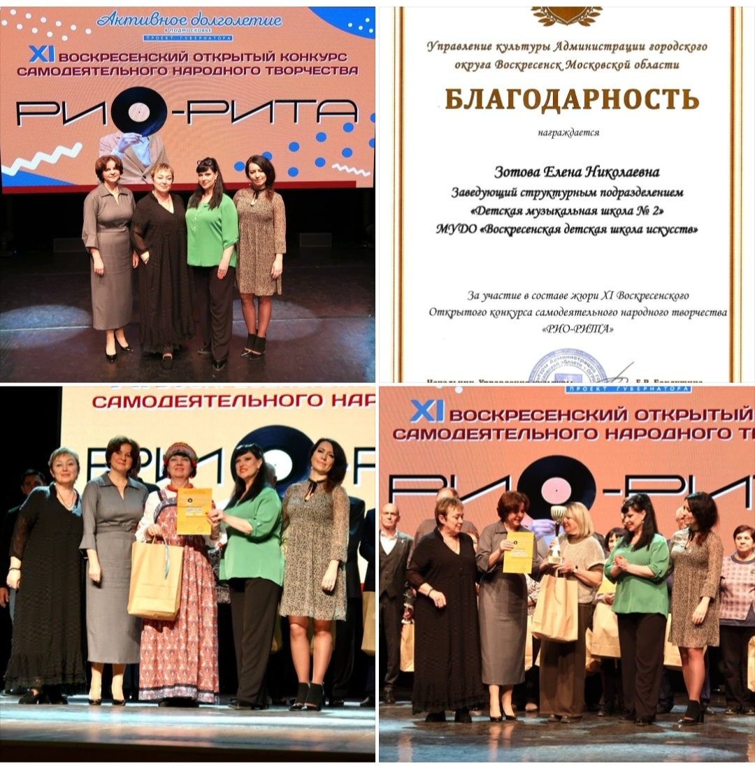 За работу в составе жюри Благодарностью начальника Управления культуры Администрации г.о. Воскресенск Баклушиной Елены Валентиновны отмечена Зотова Елена Николаевна. Благодарим директора ДК «Юбилейный» Муконина Дмитрия Сергеевича и заместителя директора Севостьянову Ольгу Владимировну за организацию и проведение такого масштабного и замечательного мероприятия.
