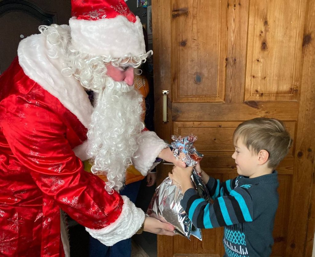 В костюме сказочного персонажа явился Матвей. Он играл с Юрой, загадывал ему загадки, тот читал гостю стихи, а под конец они обменялись подарками. Матвей принёс мальчику железную дорогу с поездом, которую они вместе собрали. А Юра подарил Деду Морозу рисунок, на котором изобразил семью возле ёлки, и спросил: