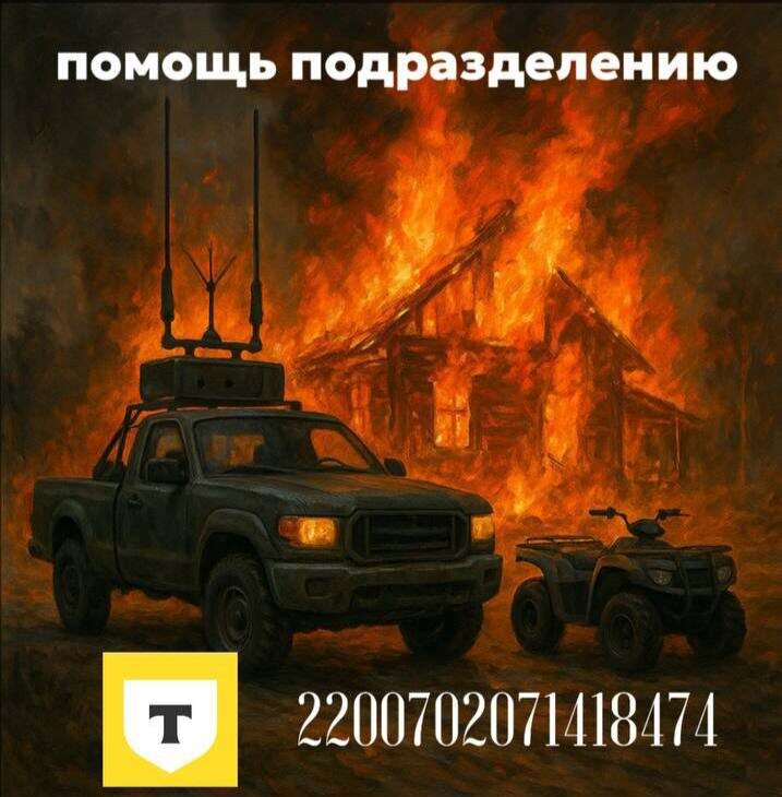 Приветствуем всех! Сейчас наше подразделение активно работает в разных регионах, от Харьковской до Курской области. Нам нужен проходимый транспорт: пикап или квадроцикл. Примерная сумма сбора — от 600 до 900 тысяч рублей. Сбор и отчет будут производиться по следующим реквизитам: 💸 https://tbank.ru/cf/1MbJCcQyejN 💸 2200702071418474