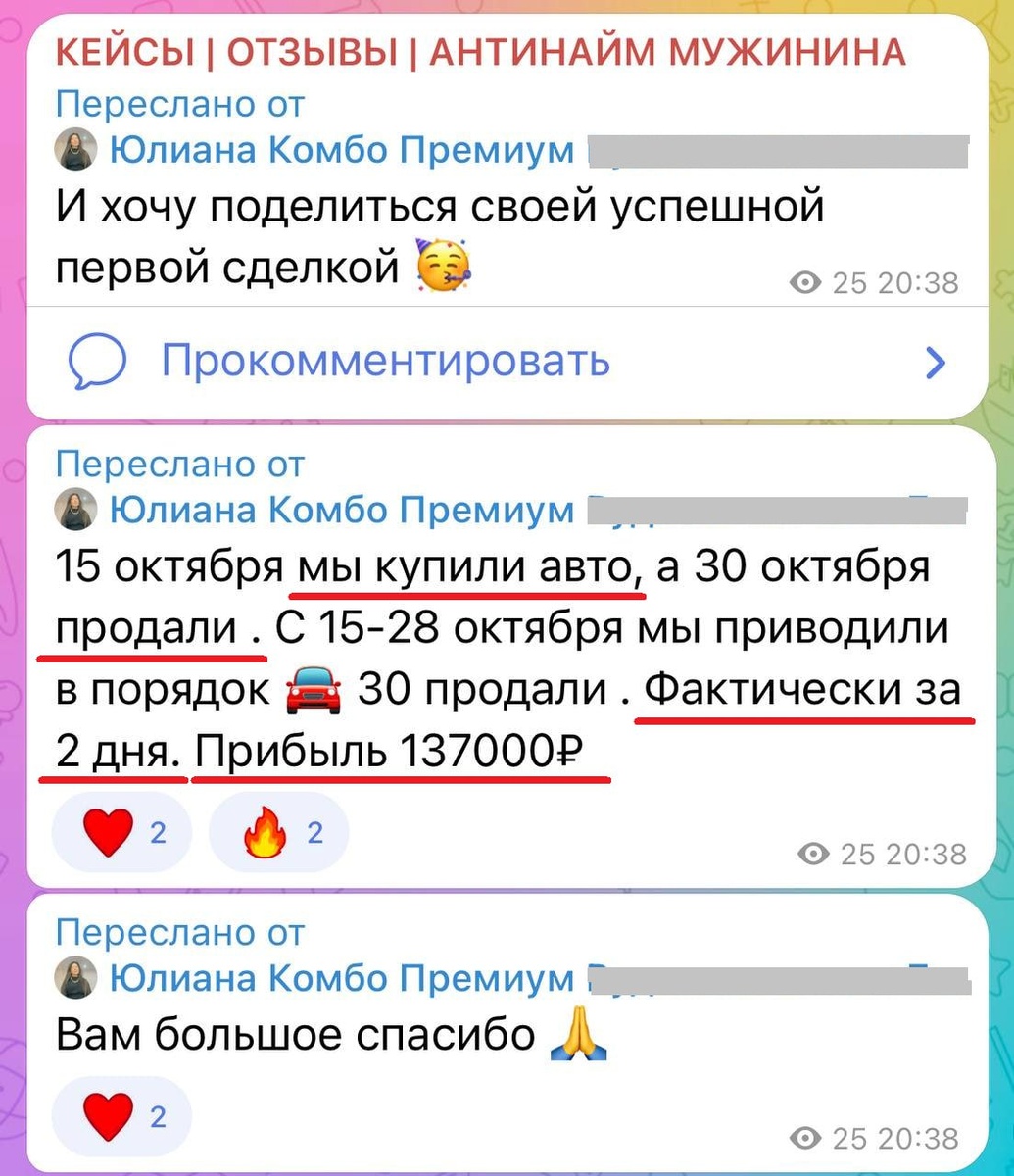 Опыт ученика 🔥 Автомобиль на торгах по банкротству. Чистая прибыль - 137 000 рублей. Покупатель нашёлся всего за 2 дня. Как сказала Юлиана: "Могли продать дороже, но нам хотелось ощутить быстрые деньги" Для справки: - автомобиль недорогой. Покупаем на торгах дёшево - продаём по рынку - получаем хорошую прибыль - такой принцип работы здесь.