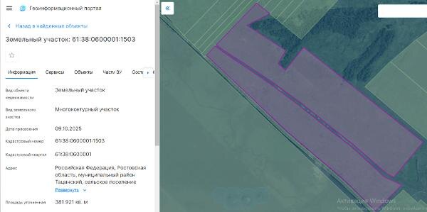 Название: Земельный участок: Земли сельскохозяйственного назначения, площадью 381921+/-5407 кв.м., кадастровый номер: 61:38:0600001:1503