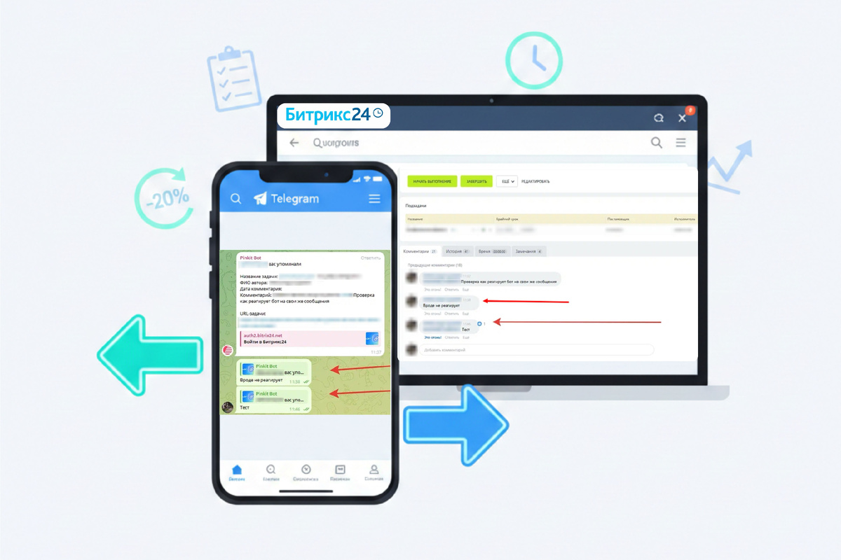 Интеграция Битрикс24 и Telegram: как сократить простои задач на 20% и ускорить работу с внешними исполнителями