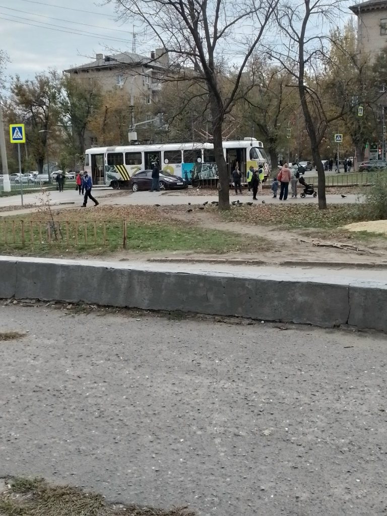 На проспекте Металлургов в Волгограде трамвай столкнулся с легковушкой