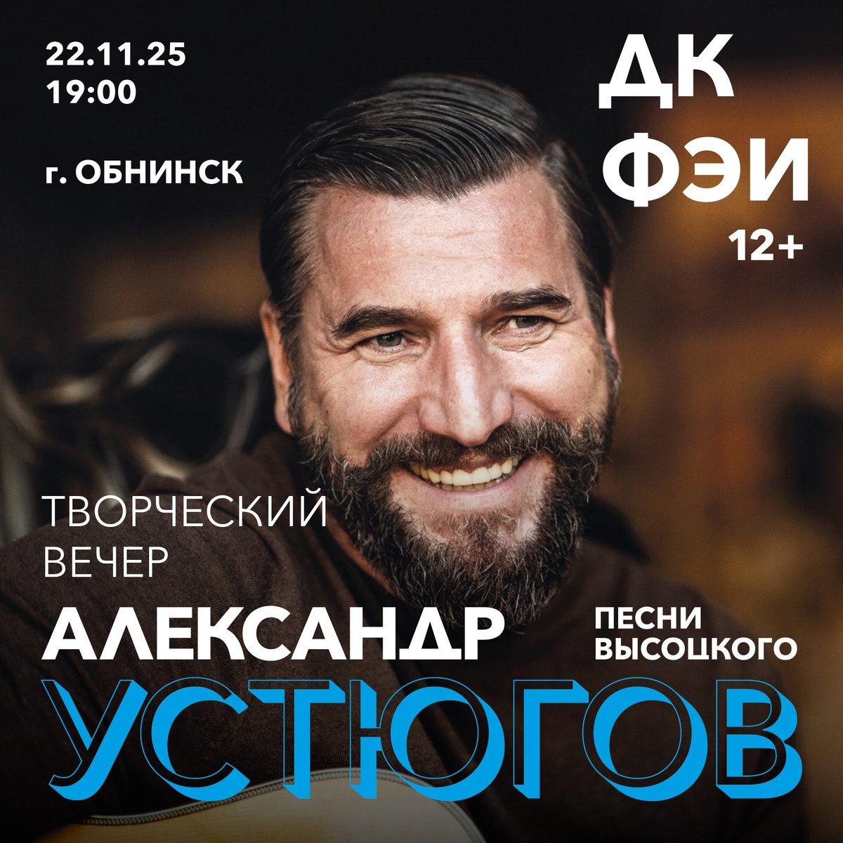 🎶22 ноября в 19:00 в ДК ФЭИ в Обнинске творческий вечер с Александром Устюговым. Это уникальная возможность встретиться с любимым актером, насладиться живым общением и погрузиться в атмосферу творчества. В этот вечер на сцене под звуки гитары прозвучат песни из нового трибьют-альбома Александра Устюгова «Песни Высоцкого», а также композиции, не вошедшие в альбом. 🎟Билеты можно приобрести по ссылке: https://obninsk.qtickets.events/170975-tvorcheskiy-vecher-aleksandra-ustyugova Обнинск, пр-т Ленина, 15. 👍 Подписаться | Ваша реклама