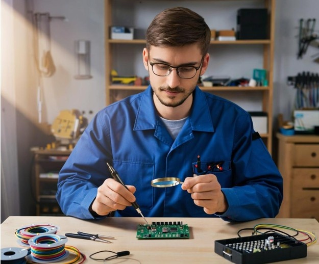 Дядя, работавший конструктором на одном оборонном заводе, быстро навел справки и направил меня в отдел кадров. Пара дней – и я ученик слесаря-сборщика РЭА (радиоэлектронной аппаратуры). Освоение профессии прошло легко. Просто, потому что я уже тогда помогал дяде, работавшему в кооперативе по производству телефонов с АОНами (набивал платы, делал распайку простых компоновок), читал простые схемы, умел работать с паяльником.