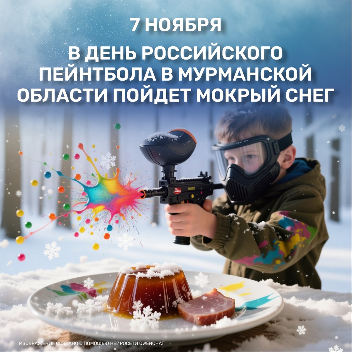 🌨В Мурманской области 7 ноября, в День холодца и День российского пейнтбола, будет облачно и до 4 градусов тепла
